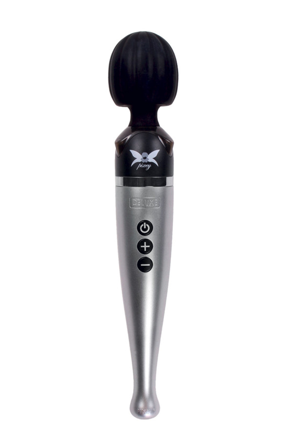 Αυτός ο δονητής με ασημί ραβδί με μαύρη κεφαλή είναι εξοπλισμένος με έναν απίστευτο κινητήρα 12.000 σ.α.λ.